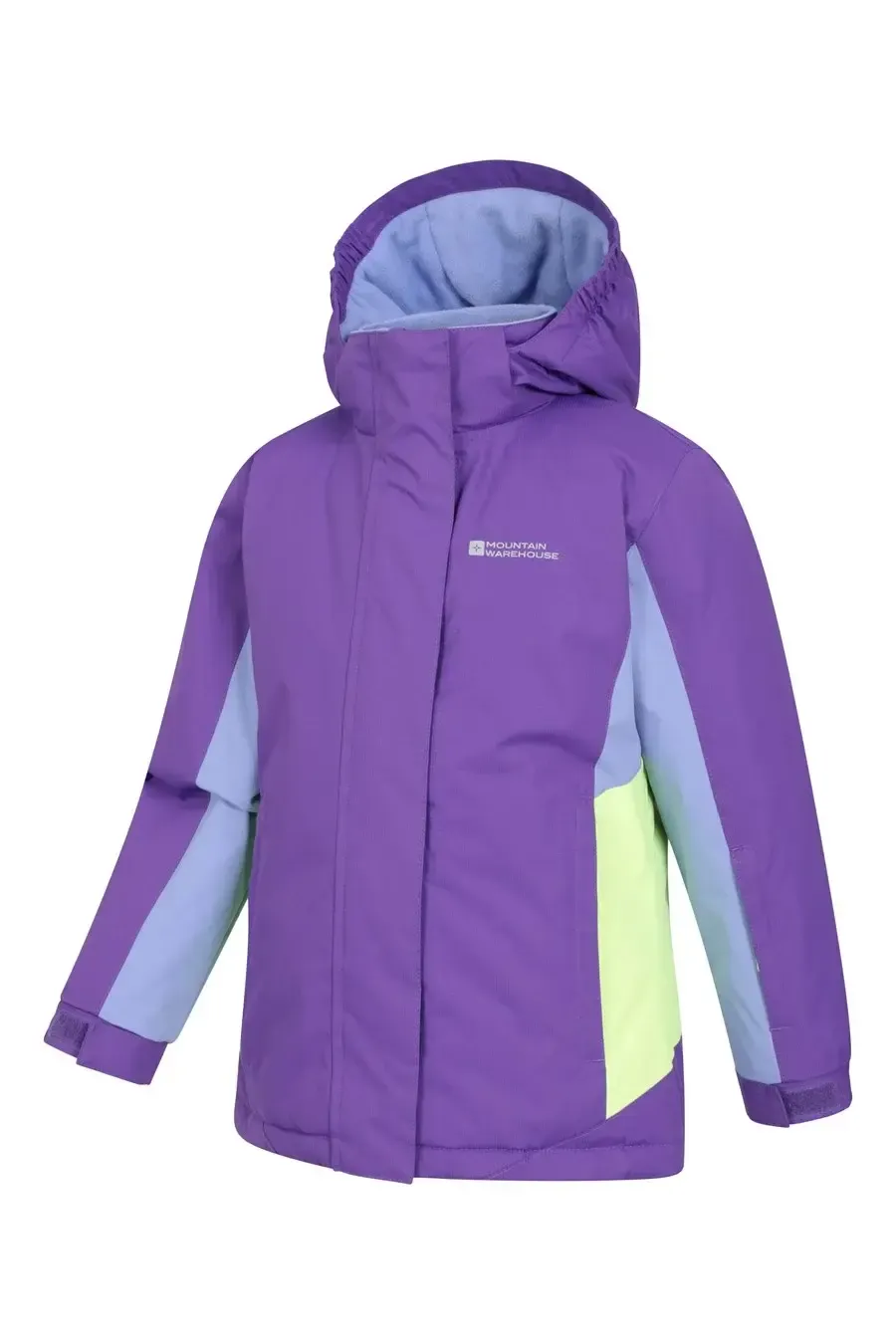 Jacket is designed in a durable snowproof material. With its fleece lining, adjustable hood and elasticated touch strap cuffs it is perfect for keeping your little ones warm on the slopes.